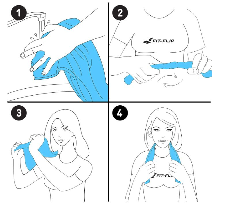 Răcire fără chimicale - prosop răcoritor cu efect natural de răcire fără a fi nevoie de chimicale! Structura de plasă special țesută a prosopului de răcire creează un efect de răcire puternic prin răcirea prin evaporare. Trebuie doar să umezi prosopul, să-l storci și să-l scuturi de 1 - 2 ori energic pentru a-i activa efectul de răcire.