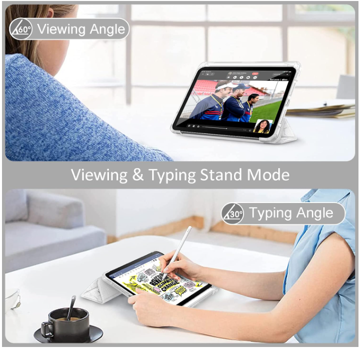 Conexiunea magnetică puternică ajută la crearea unui suport de vizionare stabil pentru tabletă. Sunt prevăzute două unghiuri pentru a vă satisface nevoile de vizionare sau de tastare, pentru a evita orice durere articulară și pentru a vă elibera mâinile pentru alte divertisment.