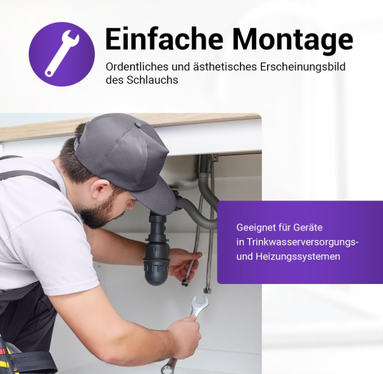Potrivit pentru: Furtunul flexibil Vioks.pro de 1/2 inch (19,3 mm) este potrivit pentru instalații pe instalații de apă menajeră, sistem de apă potabilă, sistem de încălzire, robinet de bucătărie, robinet de baie, rezervor și toaletă