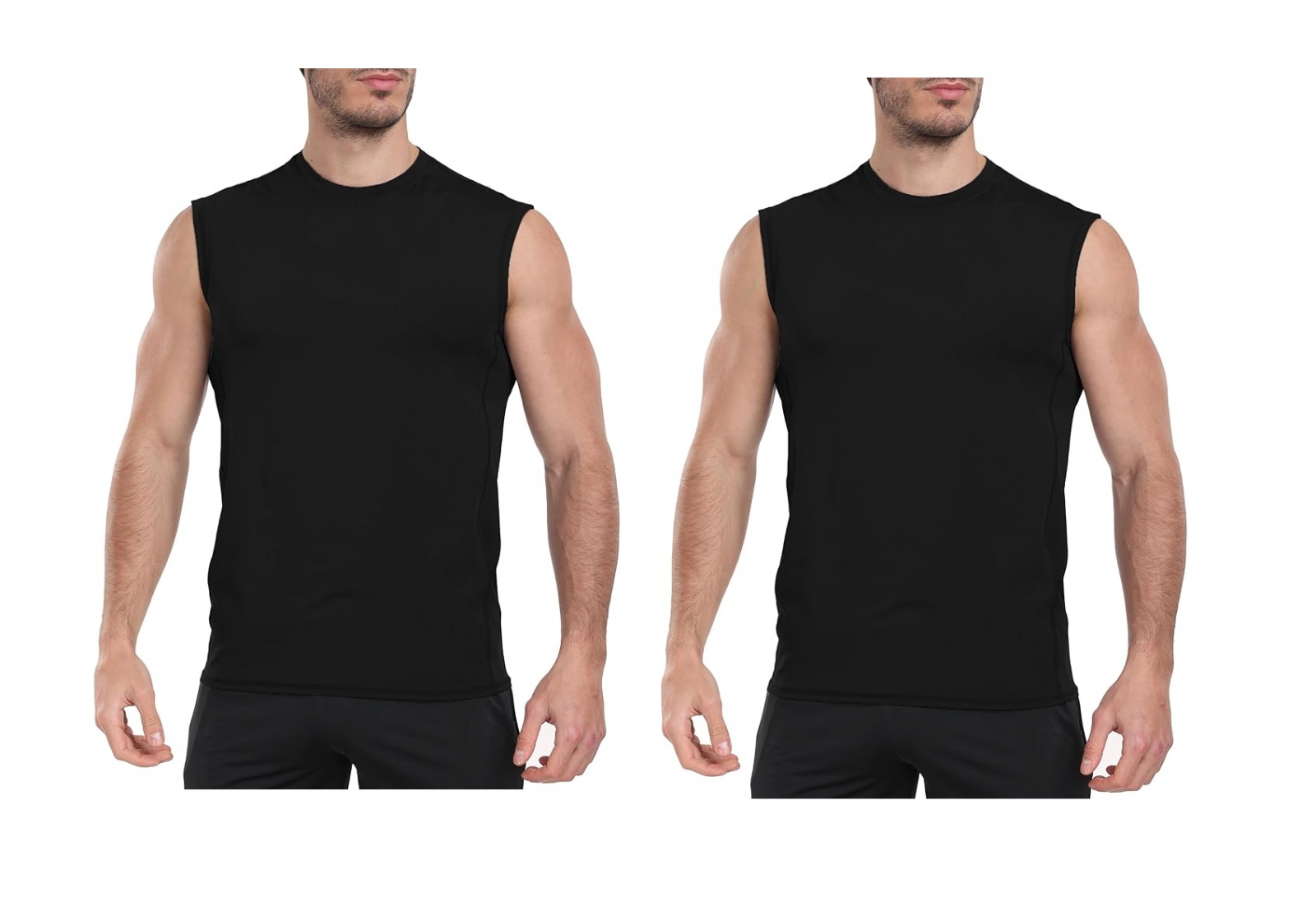 Set 2 topuri de compresie pentru barbati HovSiyla, maiou sport, negru, XL - OUTLET