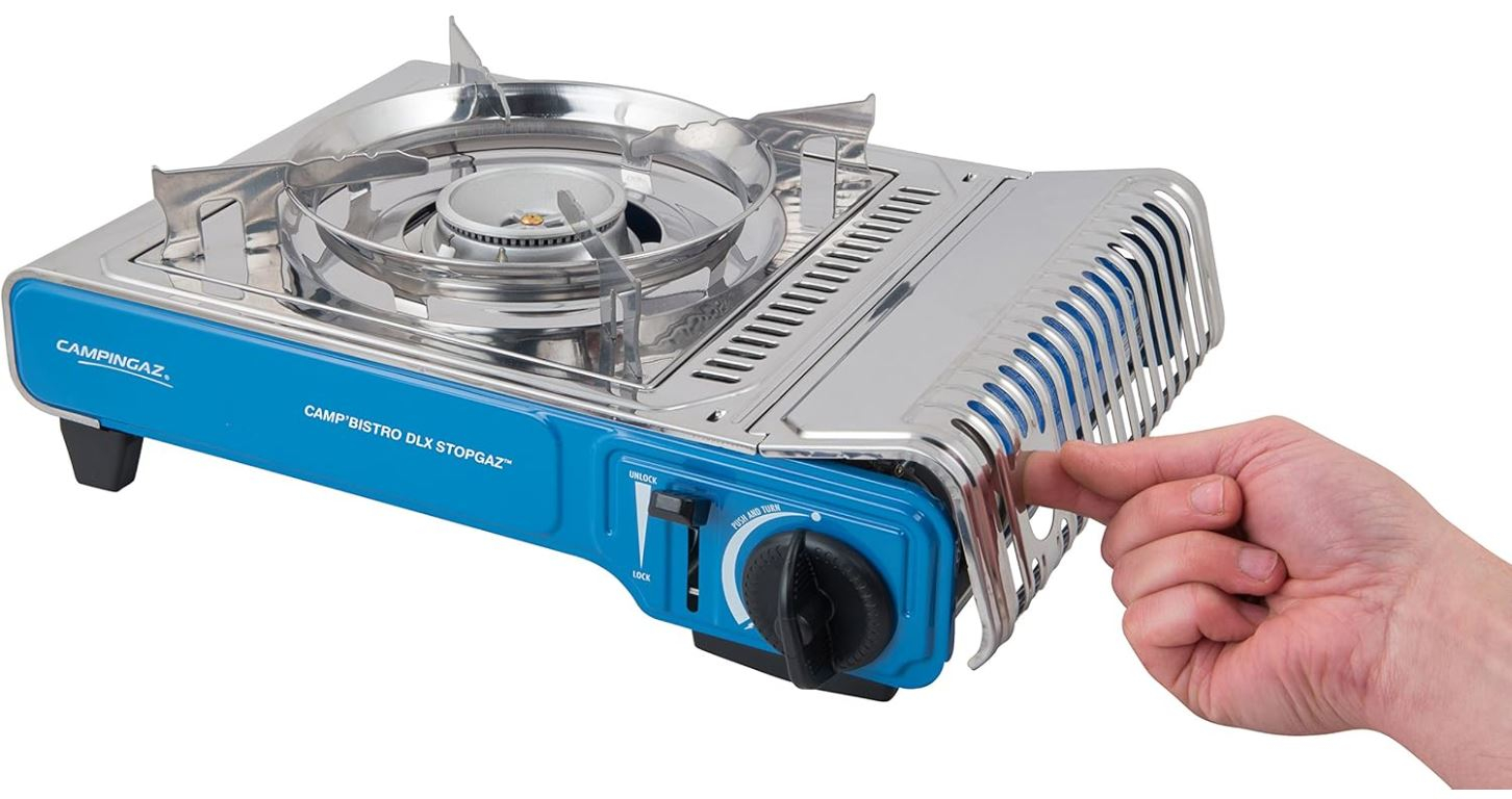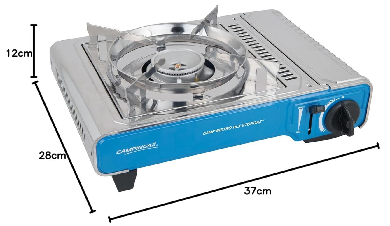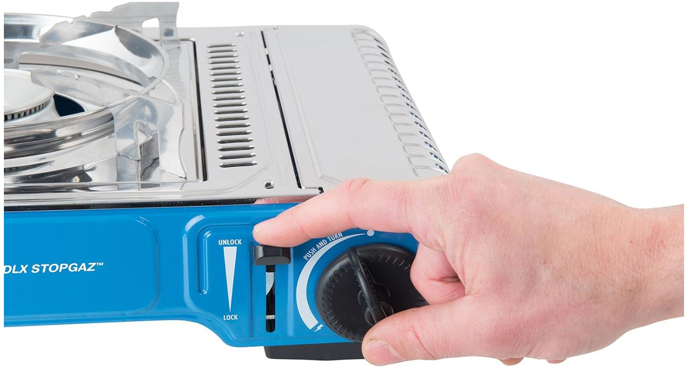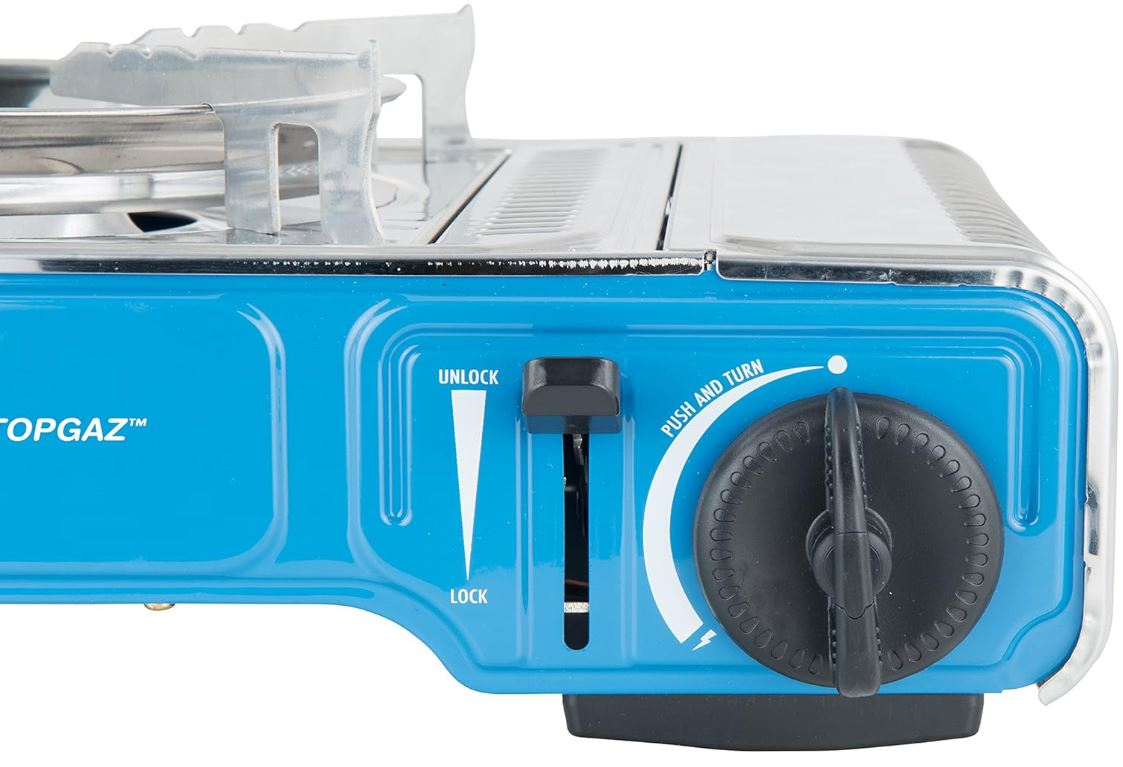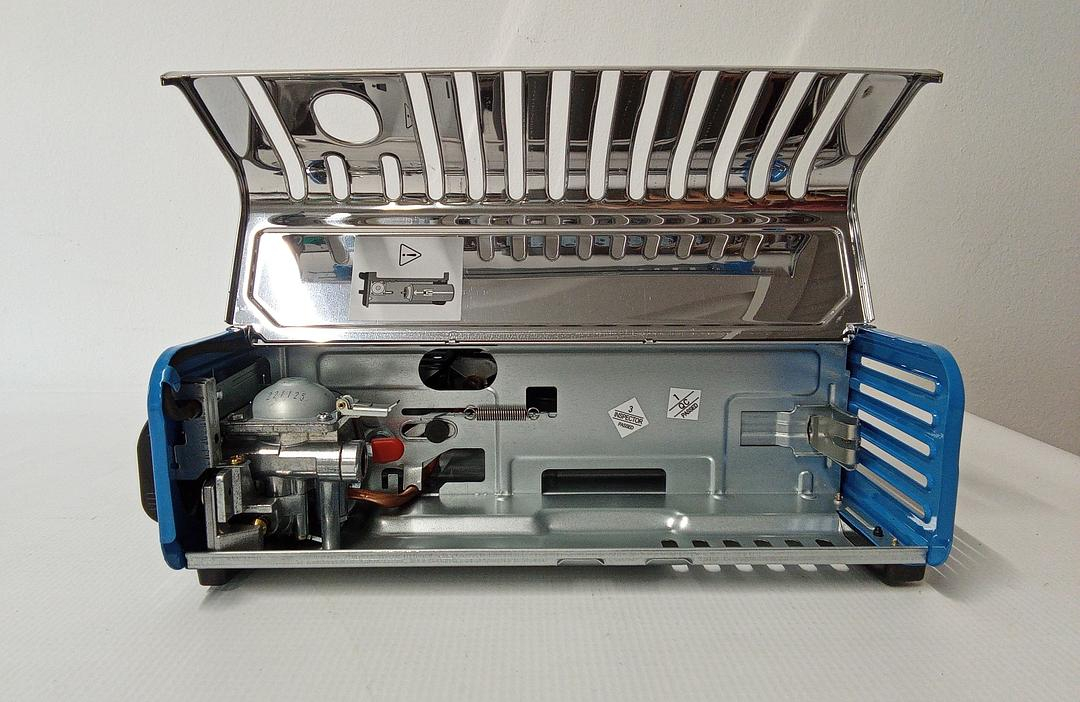 Design practic si protectie: Functionare cu butelie mica de gaz Campingaz CP 250 (nu e inclusa), care intra in compartimentul integrat in timpul functionarii;