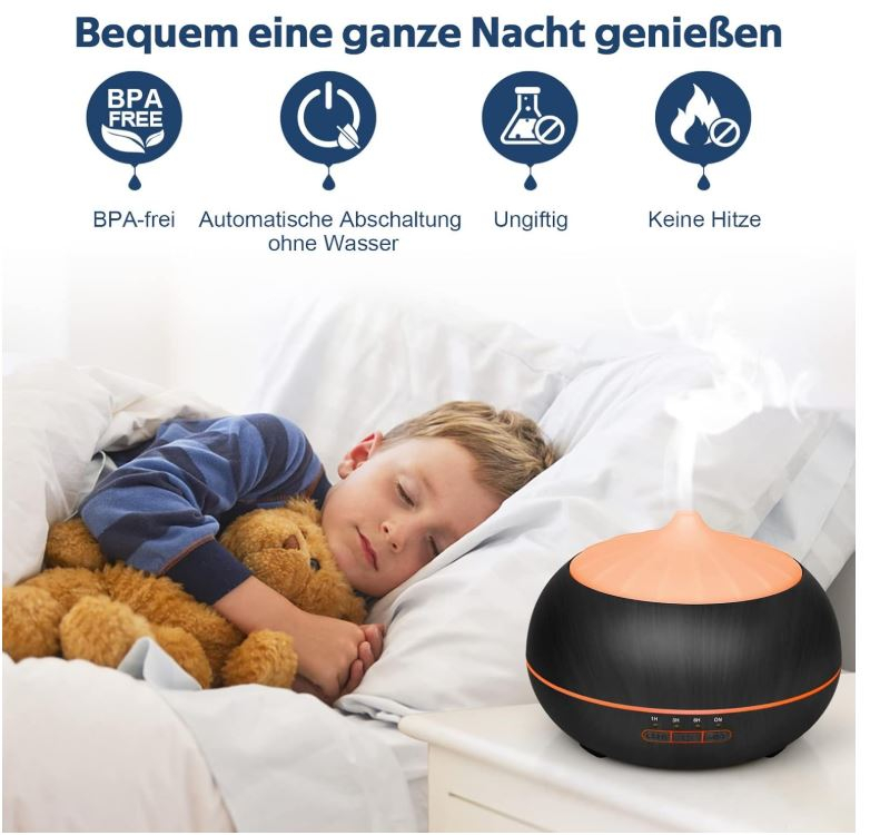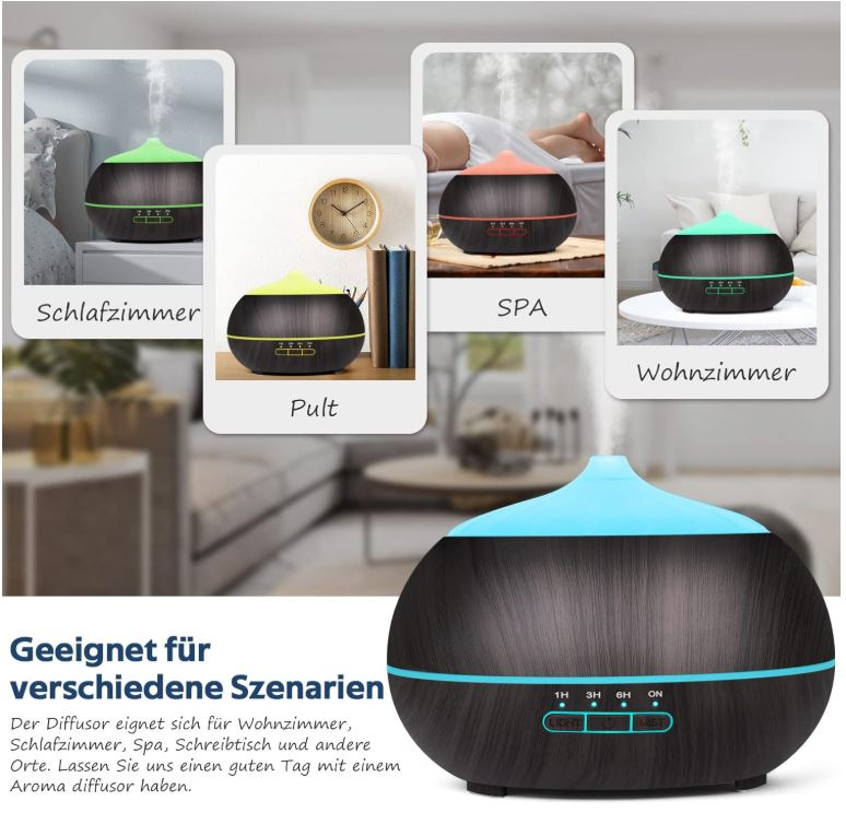 Umidificator electric de cameră pentru uleiuri esențiale pure: Pe lângă utilizarea sa în aromaterapie, acest difuzor de uleiuri esențiale acționează și ca umidificator. Creează un parfum plăcut, potrivit pentru SPA, dormitor, living, camera copiilor, birou.