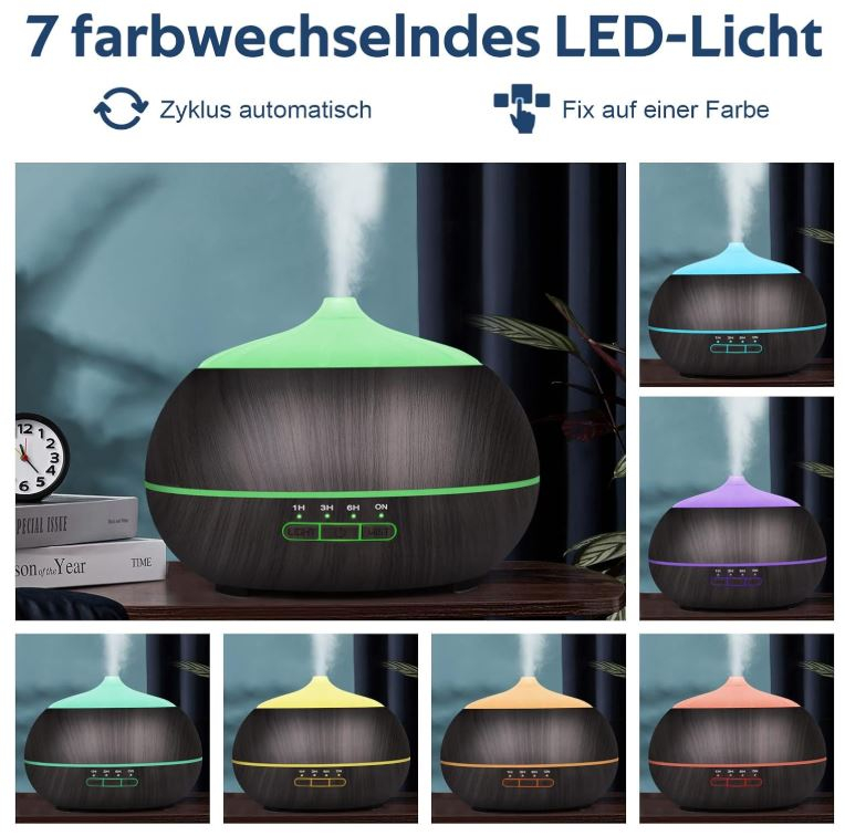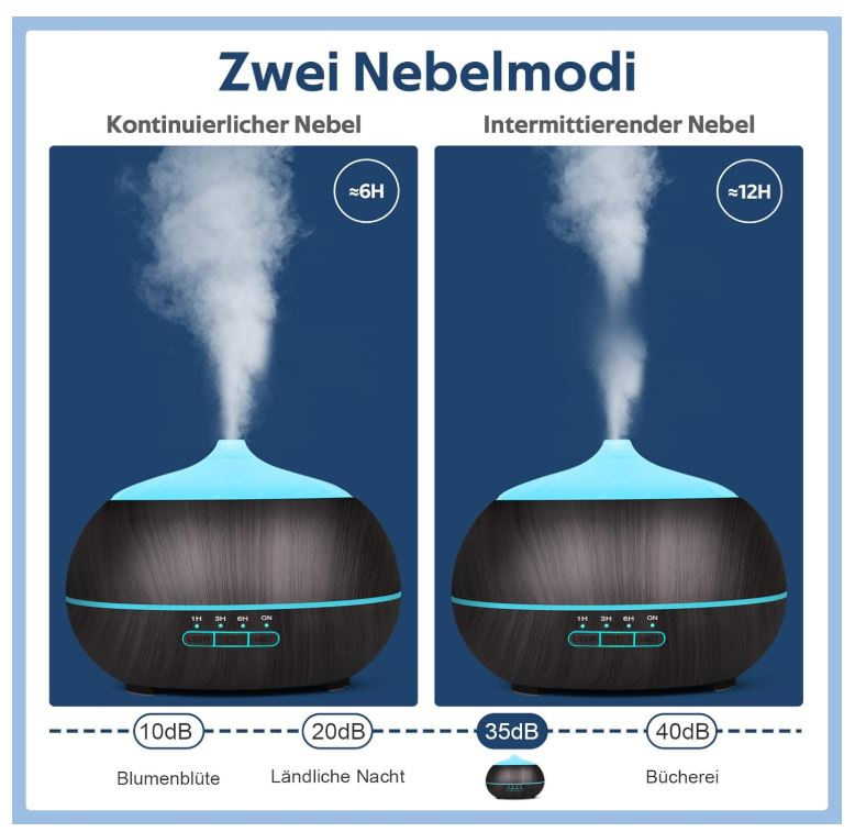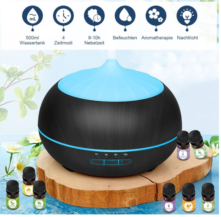 Difuzor de uleiuri esentiale de mare capacitate: acest difuzor de aromă este dotat cu un rezervor de apă de 500 ml cu capacitate mare, care poate funcționa până la 10 ore. Este ușor de curățat. Vă rugăm să rețineți că apa nu depășește nivelul maxim de apă.