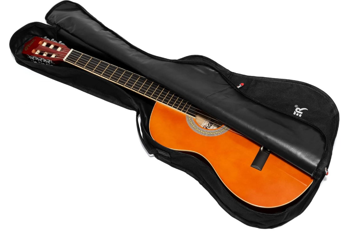 Ideal pentru toate chitarele clasice normale. Mâner din nailon și curea de umăr pentru versatilitate atunci când mergi oriunde. Este foarte accesibil pentru ca este ieftin dar si un produs de calitate superioara. Cusătura exterioară și construcția interioară din nailon asigură stabilitate și durabilitate. Deși nu are căptușeală internă, această geantă este ideală pentru cei cu un buget redus. Dimensiuni: Lungime: 112,5 cm/44,29 inchi, bară superioară: 30 cm/11,81 inchi, bară inferioară: 40,5 cm/15,94 inchi, adâncime: 7 cm/2,76 inchi, lățime cap: 17,5 cm/6,89 inchi.