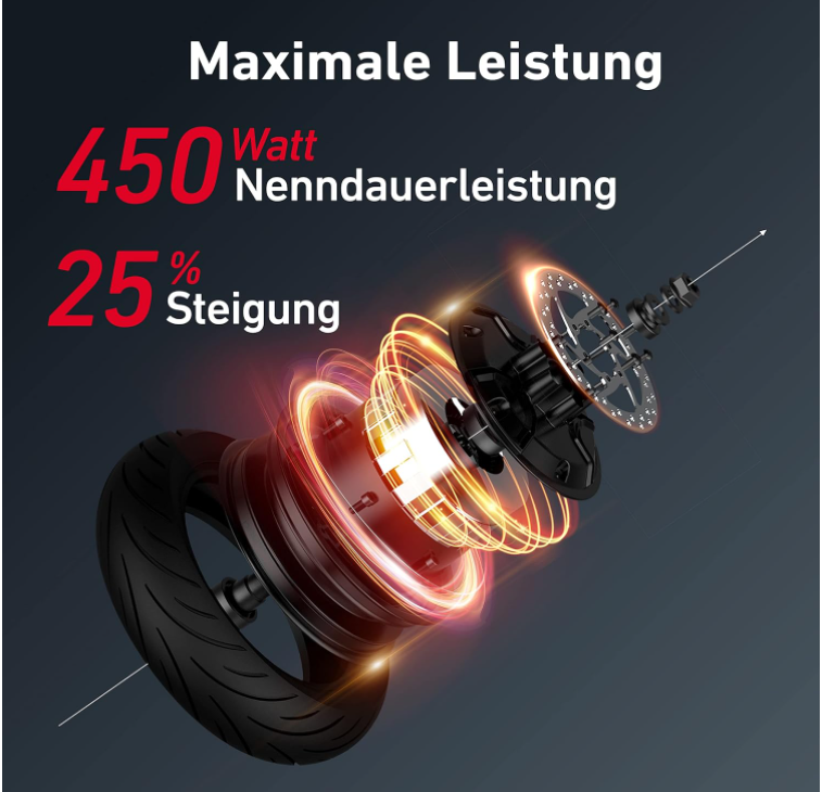 Autonomie de până la 65 km (variază în funcție de forma fermei, presiunea aerului în pneuri, condițiile drumului, greutatea corpului și temperatura exterioară), baterie complet reîncărcabilă în aprox. 8 h