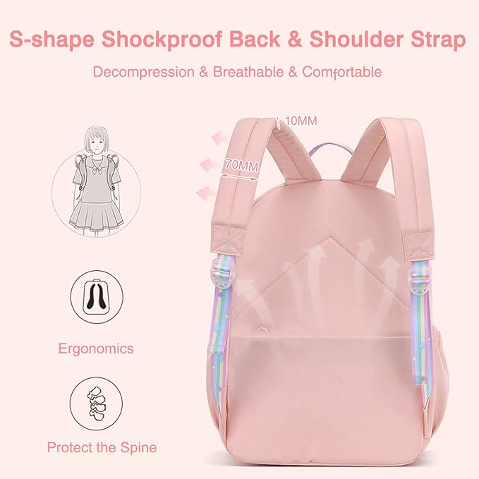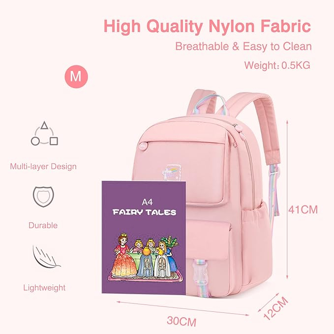 Țesătură din nailon ultraușoară și rezistentă la apă - Geanta școlară drăguță este realizată din material nailon de înaltă calitate, design cu frunze de lotus rezistente la stropire, extrem de rezistentă la rupere, rezistentă la zgârieturi și durabilă, super ușoară, protejează perfect geanta de stropirea cu apă în zilele ploioase . Rucsac ușor, cu fir de cusut delicat și neted. Cusăturile colorate la modă nu numai că măresc rezistența, dar oferă și durabilitate mai lungă și calitate fiabilă.