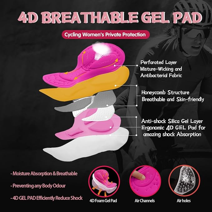 Pad tehnic ergonomic 4D: chiloții noștri pentru ciclism sunt cusuti, căptușeală durabilă din silicon 4D, se potrivește bine în jurul șoldurilor, fără a se deforma și aluneca, protejând în același timp osul șoldului de răni.