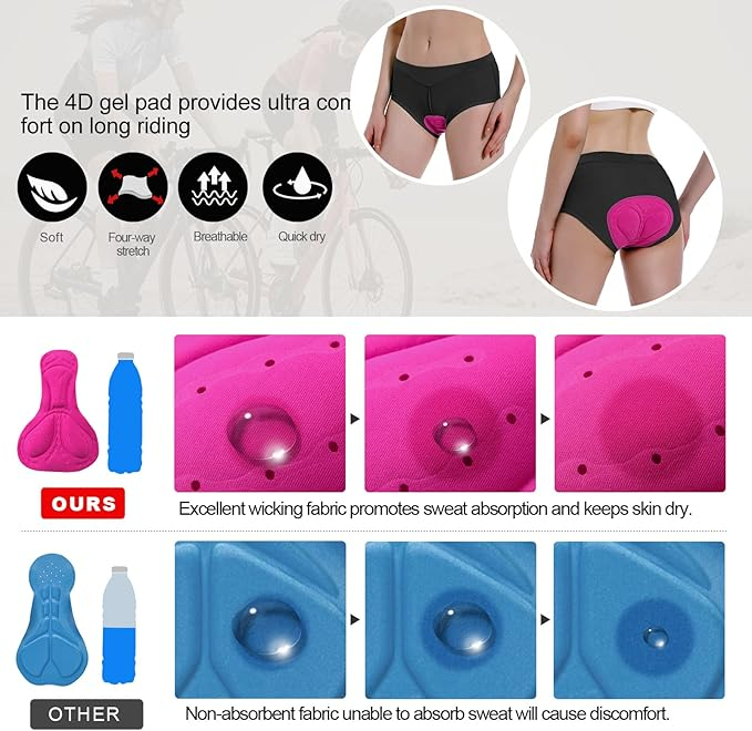 Elimina umiditatea si respira: chilotii nostri de ciclism sunt confectionati din 92% poliester + 8% spandex, care absoarbe eficient umezeala, elimina transpiratia de pe piele si te mentine uscat si rece. În comparație cu alte lenjerie de bicicletă, această lenjerie folosește un material mai respirabil și mai subțire. Este potrivit pentru navetă și plimbări de agrement. Pur și simplu atașează-ți fusta sau pantalonii scurți preferati