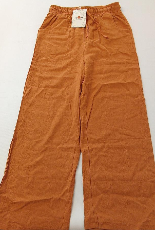 Pantaloni largi pentru femei, de culoare maro, sunt o piesă vestimentară confortabilă și elegantă, potrivită pentru o varietate de ocazii. Cu o croială lejeră și fluidă, acești pantaloni oferă libertate de mișcare și confort pe tot parcursul zilei. Culoarea maro adaugă o notă de căldură și rafinament, fiind ușor de asortat cu alte piese vestimentare din garderoba ta. Poți alege să îi porți cu un tricou simplu pentru un aspect casual sau să îi accesorizezi cu o bluză elegantă pentru o ținută mai sofisticată. Materialul de calitate și croiala modernă fac din acești pantaloni o alegere versatilă pentru diverse situații și sezoane. Pentru un look chic și confortabil în același timp, pantalonii largi pentru femei, de culoare maro, sunt o opțiune excelentă.