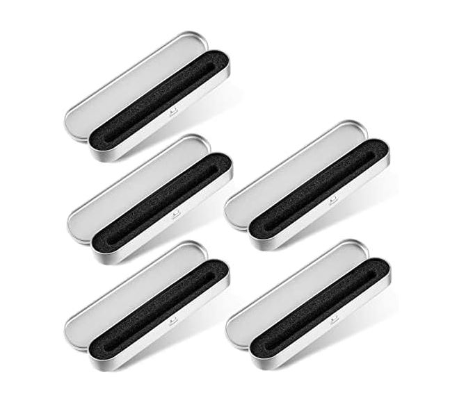 Cantitate abundenta: vei primi 5 cutii argintii intr-o cutie practic si functionala eleganta din metal argintiu, permitandu-ti sa-ti impachetezi pixurile in aceste cutii rafinate si minimaliste pentru a le imparti prietenilor sau colegilor.