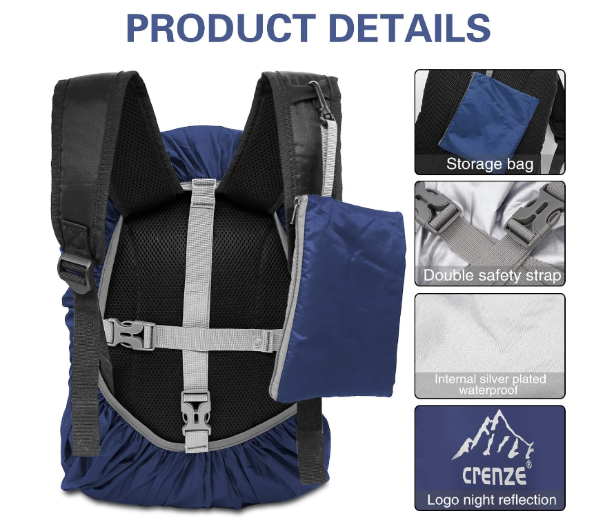 Husa de ploaie vine cu curele cu catarame reglabile încrucișate, care pot fi ajustate pentru a se potrivi perfect diferitelor tipuri de rucsacuri, împiedicând husa de ploaie să alunece în timpul utilizării, ceea ce vă poate proteja întotdeauna rucsacul.