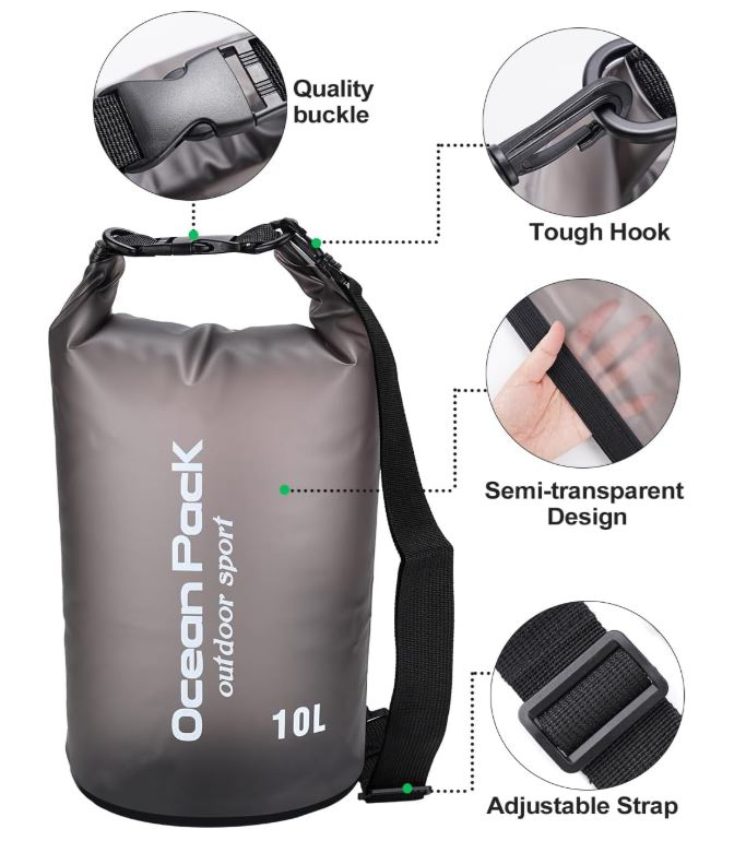 Diverse scenarii: dacă vrei să înoți, îți poți proteja cu ușurință telefonul, ceasul și portofelul cu o geantă uscată de 2L. Când pescuiți sau plimbați cu barca, sacii uscati de 5L sau 10L vă ajută să vă protejați telefonul și portofelul și să luați câteva articole de îmbrăcăminte cu dvs. Cu o geantă uscată de 20 L, ai o capacitate mai mare și o poți transporta în camping sau o poți folosi pentru o scurtă călătorie fără a fi nevoie să folosești alte genți.