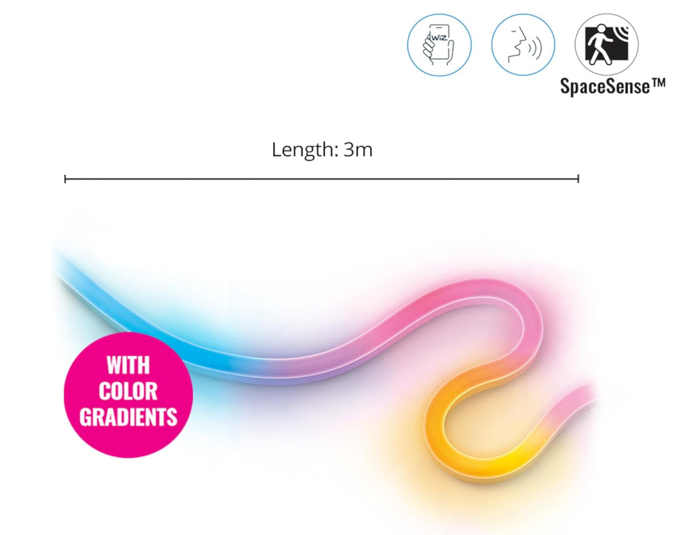 Tehnologia SpaceSense: intrați în aplicația WiZ și activați SpaceSense din automatizări. Cu cel puțin două lumini WiZ într-o cameră, transformați-vă luminile în senzori de mișcare și aprindeți și stingeți automat luminile cu detectarea mișcării.