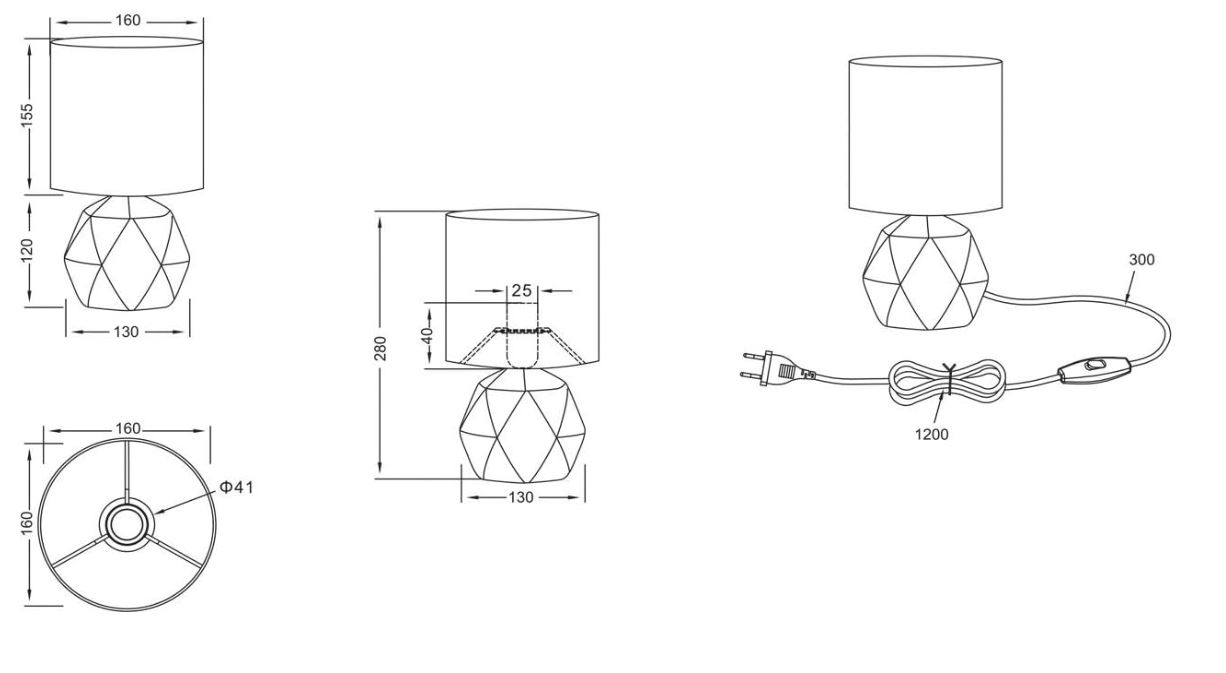 Lampa are o înălțime de 28 cm și un diametru de 16 cm
