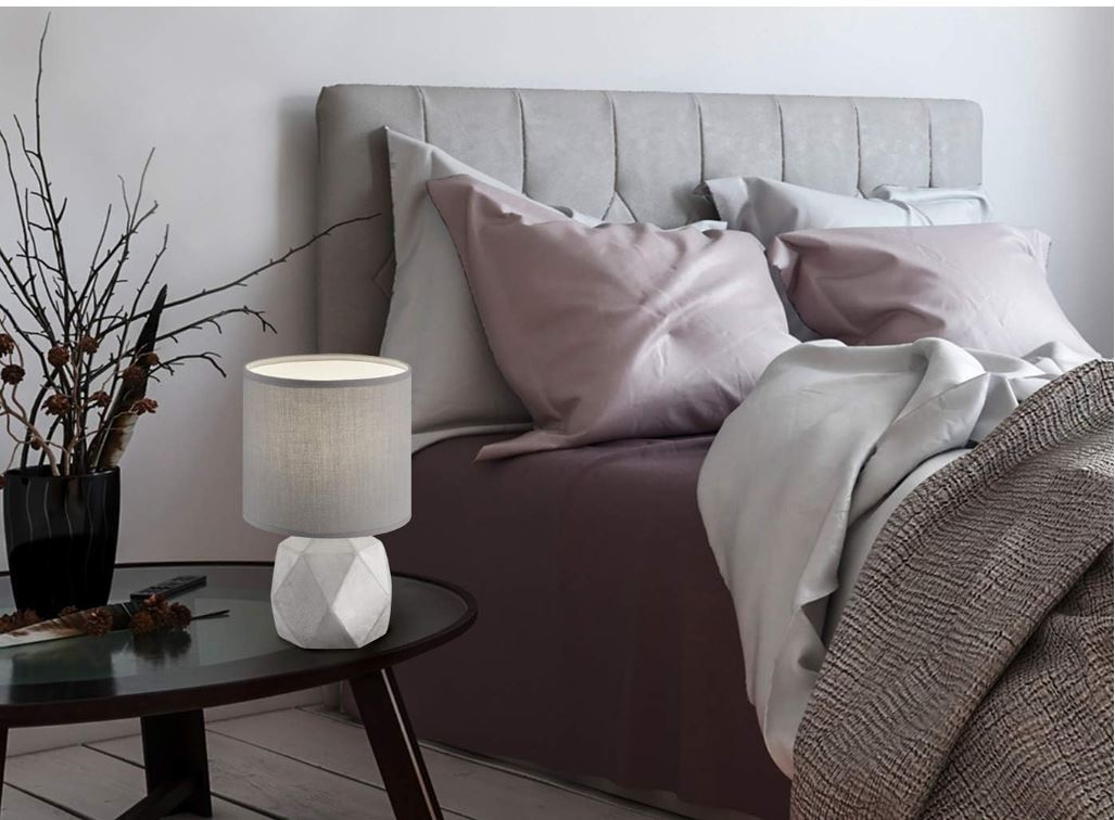 Lampa de masa Pike cu baza din ceramica gri si abajur din material gri