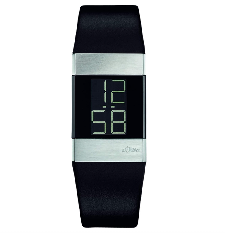 Ceas digital s.Oliver de înaltă calitate, din oțel inoxidabil, cu curea din piele sintetică moale și mișcare de calitate japoneză
