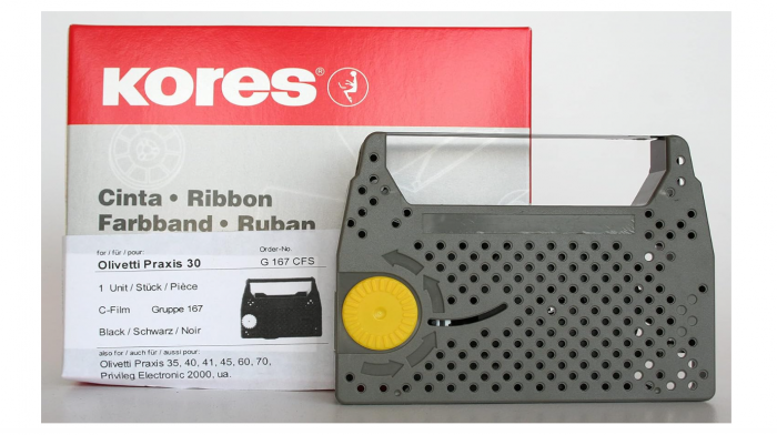 Compatibil cu Triumph-Adler Gabriele 5005; Gabriele 5005 DS; Gabriele 5005 Prof; Seria Gabriele 5005; Privileg; Electronic 1000; Electronic 1200; Electronic 1300; Electronic 1400; Electronic 1500; Electronic 1700; Electronic 1900; Seria electronică 1900; Electronic 1910; Electronic 1920; Electronic 1960; Electronic 1970; Cărucior Olivetti Daisy; Cărucior cu margarete 50; Cărucior cu margarete P 20; Compact 50; DY 200; ET 50; ET Personal 50; ETP 50; ETP 50 I; PR Praxis 20; PR Praxis 2000; PR Praxis 2000 DLX; PR Praxis DLX; Facit T 210; Seria T 210; T 215; T 225; T 235; T 250; Seria T 250; T 255; T 265; T 275; Citizen Electronic 2000; Electronic 3000; IBM 1500; Commodore Style 12; Stil 12 Plus; Stil 32; Silver Reed Extreme 3000. Gama modernă de panglici Kores sunt produse de înaltă tehnologie care au suferit o dezvoltare atentă și conțin tehnologie precisă. În primul rând, există 4 componente importante care determină calitatea panglicii: materialul suport corect, culoarea panglicii de acoperire, un corp precis, precum și o producție precisă. În funcție de zona de operare, sunt necesare diferite materiale suport: C-Film corectabil asigură corespondența perfectă cu mașina de scris. Panglicile KORES sunt produse de înaltă calitate datorită caracterului lor intensiv și consistent, formulei de viață lungă, rezistente la pete.