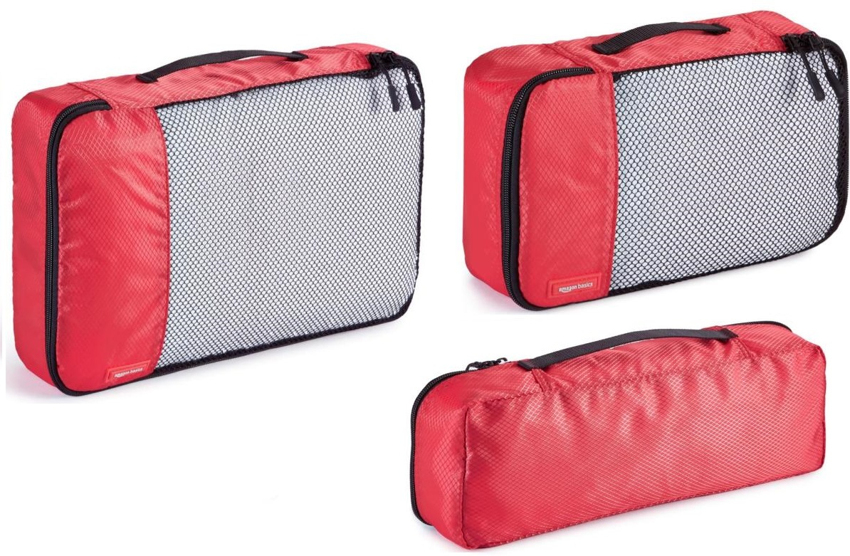 Set 3 oragnizatoare pentru calatorie Amazon Basics, rosu - OUTLET