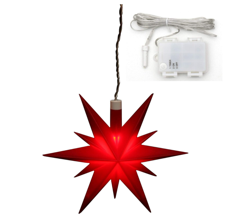Dimensiunile stelei 13,5 x 12 cm. Pentru funcționare sunt necesare baterii. Include iluminare LED și cronometru de 6 ore.