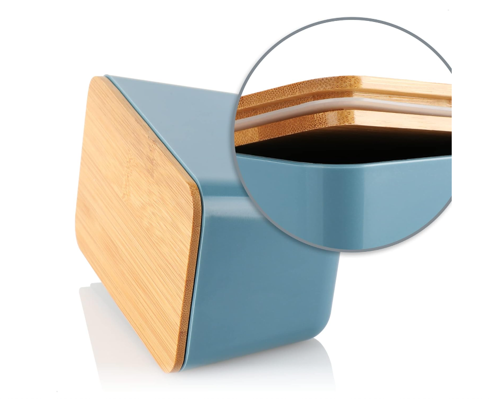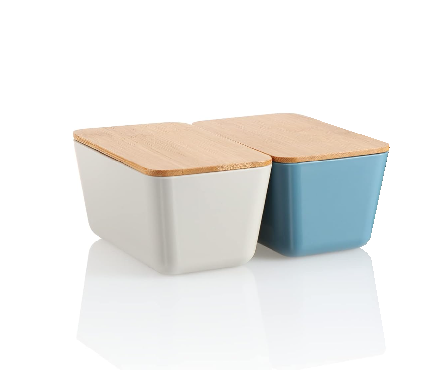 Set practic: setul de depozitare constă din 2 recipiente de depozitare ușoare și robuste în culori diferite, fiecare cu un capac din bambus