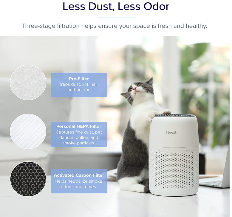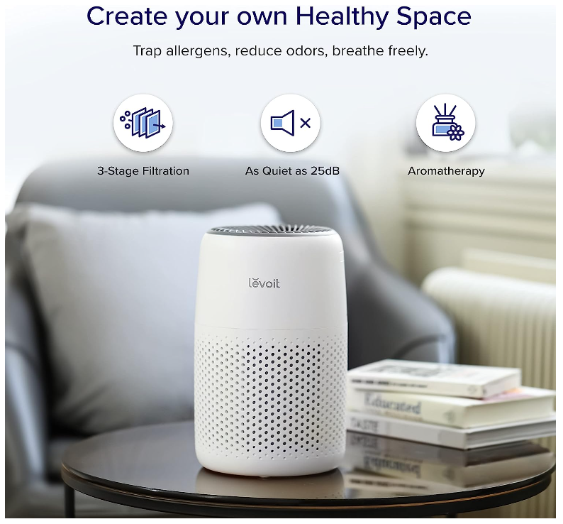 Împrospătați și relaxați-vă: dacă vă confruntați cu alergii, somn de calitate scăzută, congestie sau simptome cauzate de părul animalelor de companie, purificatorul de aer Levoit Core Mini este gata să vă ajute să creați un spațiu sănătos.