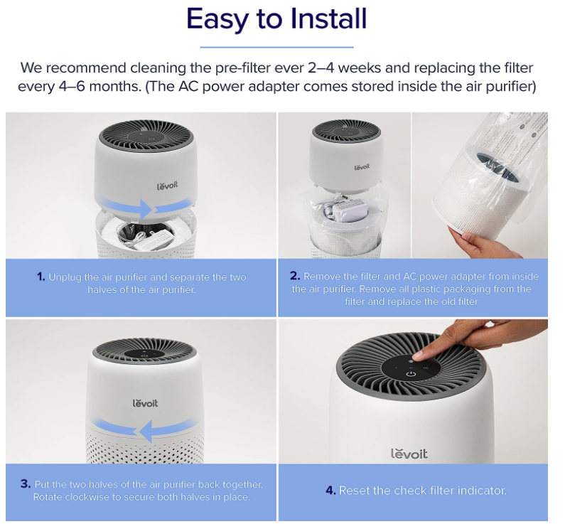 Economisiți spațiu: obosit să trageți un purificator voluminos înainte și înapoi, ușor, ușor de călătorit și compact, purificatorul de aer Levoit Core Mini se potrivește cu ușurință în orice dormitor, birou sau sufragerie, creând mai puțin dezordine și mai mult aer proaspăt