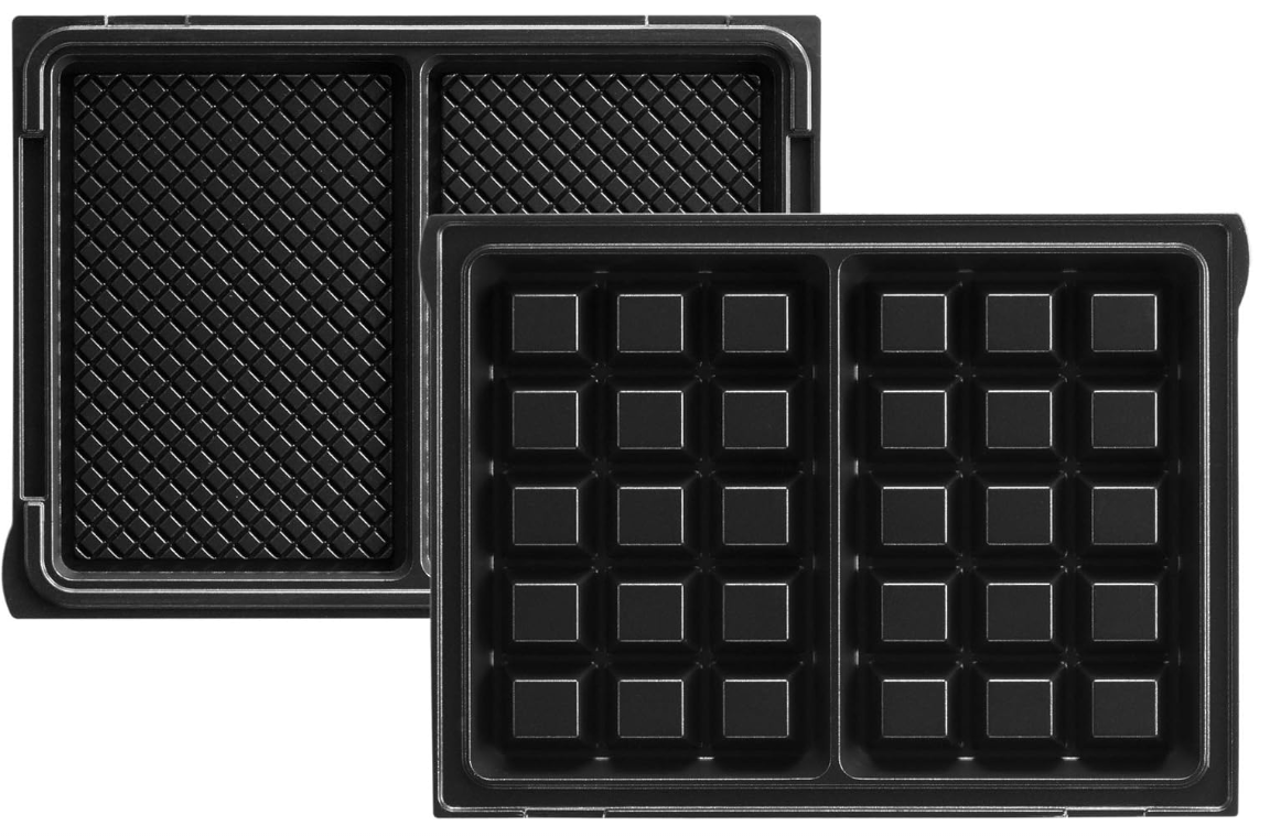 Rezultat impecabil: plăcile de aluminiu turnate acoperite cu acoperire antiaderentă permit o bună distribuție a căldurii și fac vafe perfect modelate, ușor de eliberat.
