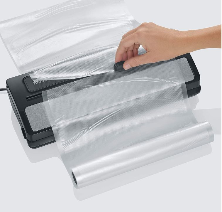 Ideal pentru pungi și role de vid până la o lățime de 30 cm, precum și pentru recipiente cu vid, separare optimă datorită tăietorului integrat de