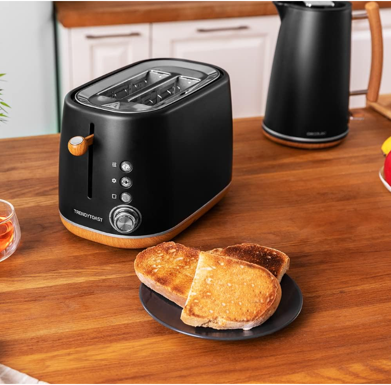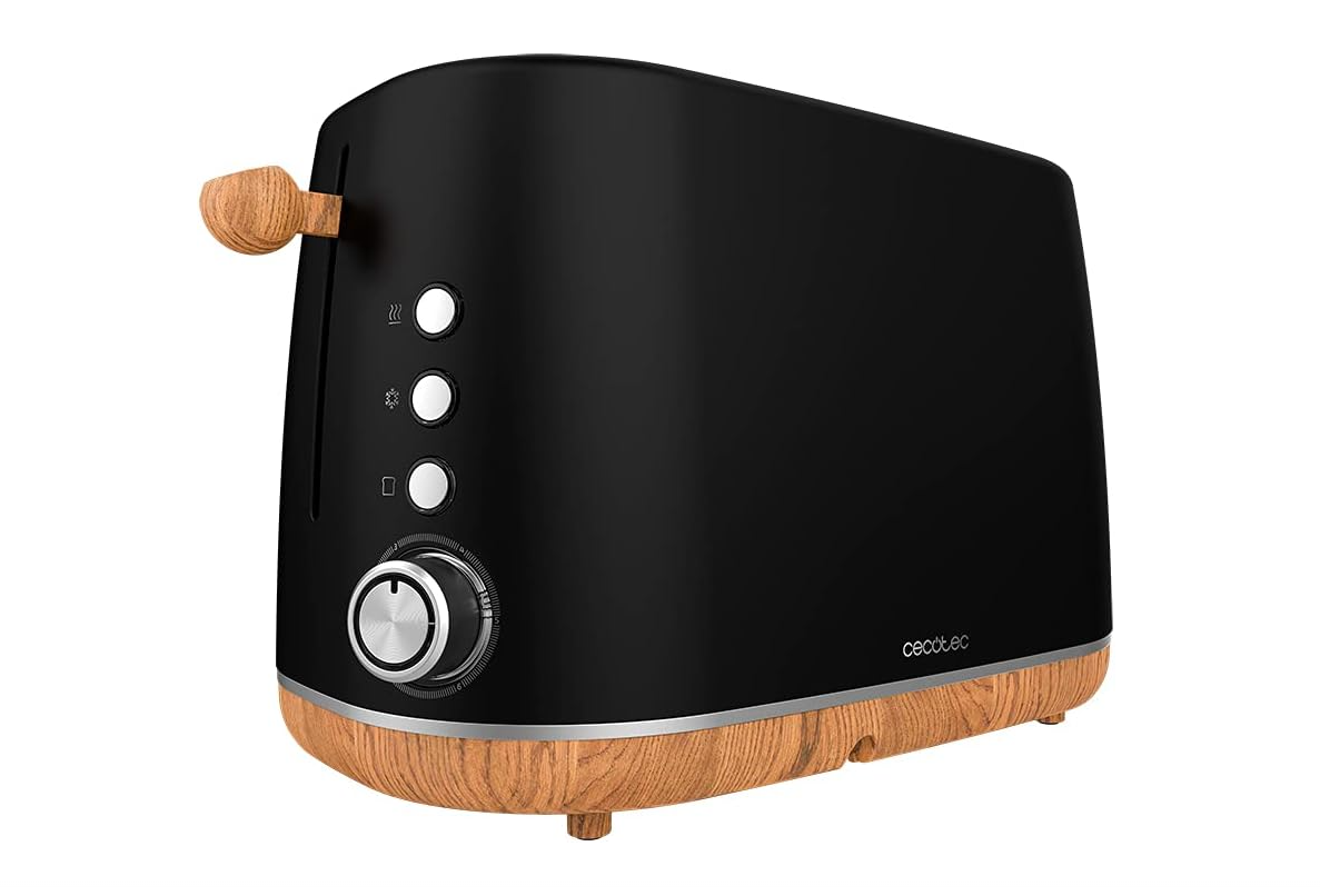 Design elegant cu finisaje cu efect de lemn. Are 3 funcții preconfigurate: Reîncălzire, Dezghețare și Anulare (aceasta din urmă este folosită pentru a întrerupe procesul de prăjire când se dorește). Tije superioare pentru a ajuta la încălzirea alimentelor mari, cum ar fi produse de patiserie sau croissante.