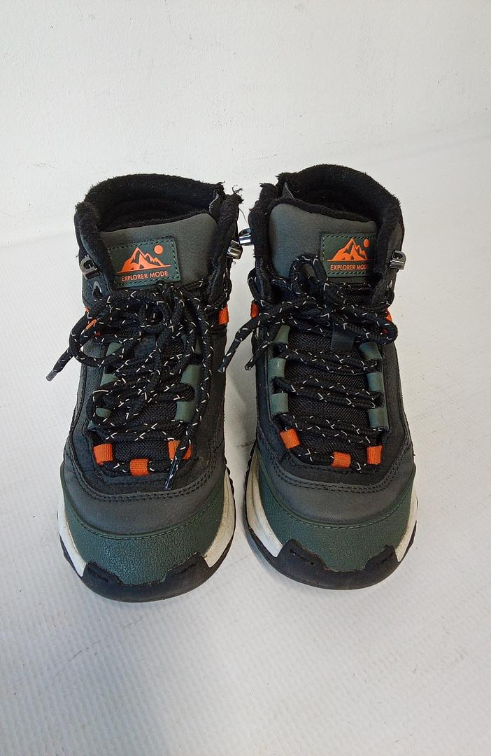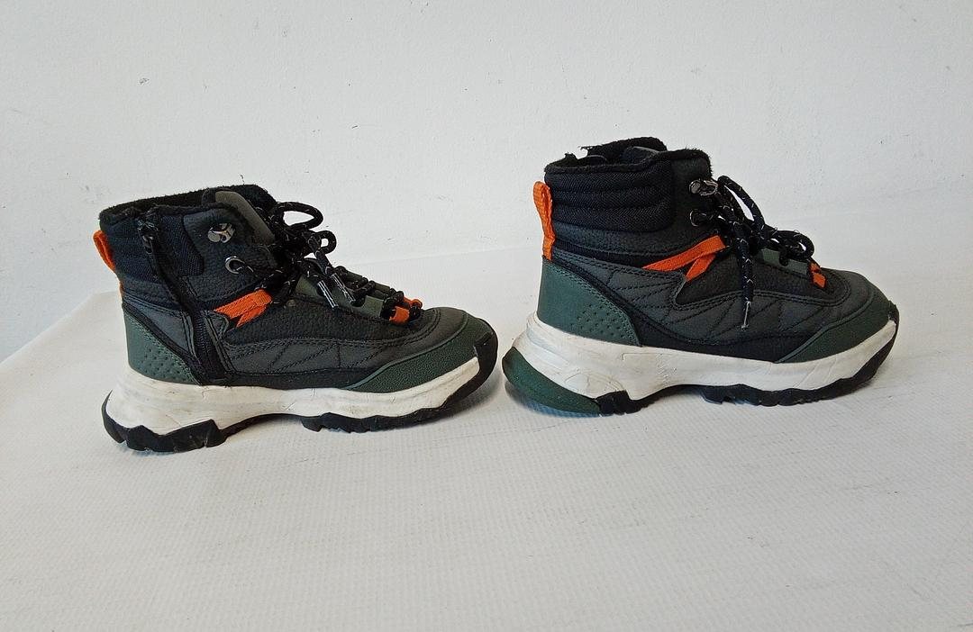 Aceste ghete pentru copii sunt perfecte pentru aventurile în aer liber, oferind confort, protecție și durabilitate. Construcția robustă combină materiale rezistente cu o talpă aderentă, ideală pentru terenuri variate. Designul modern, în culori verde, negru și accente portocalii, le face atrăgătoare și ușor de asortat.