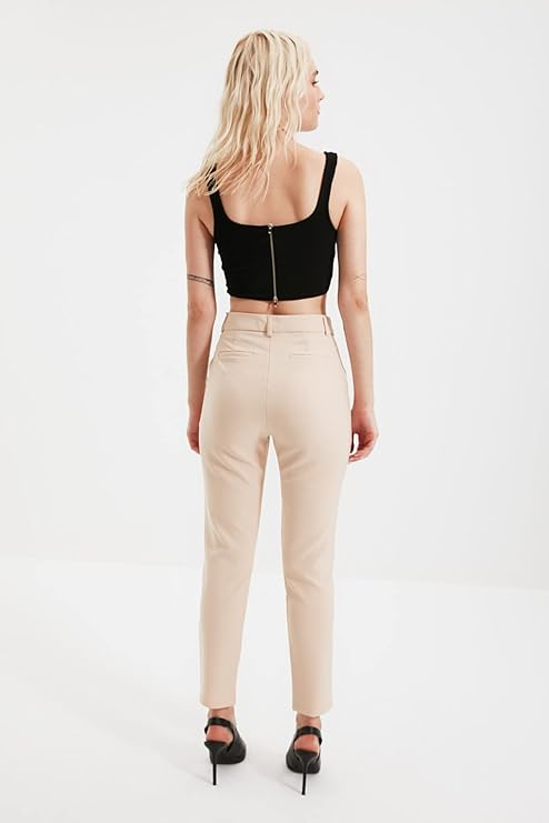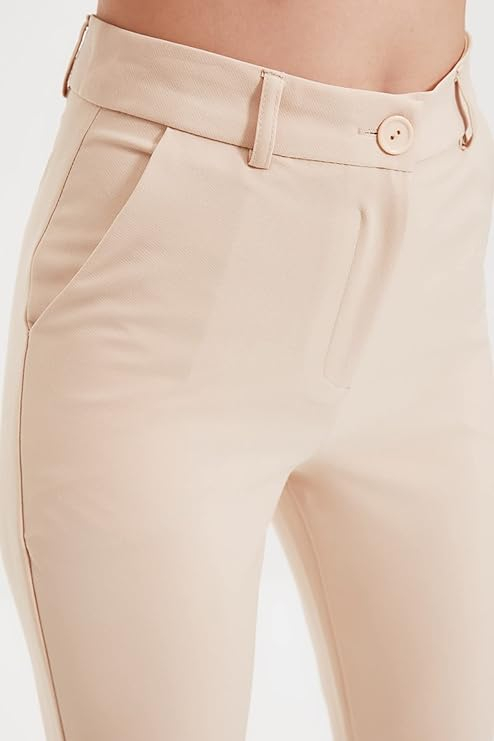 Pantaloni lungi pentru femei Trendyol Stone Cigarette, bej, 40 - OUTLET