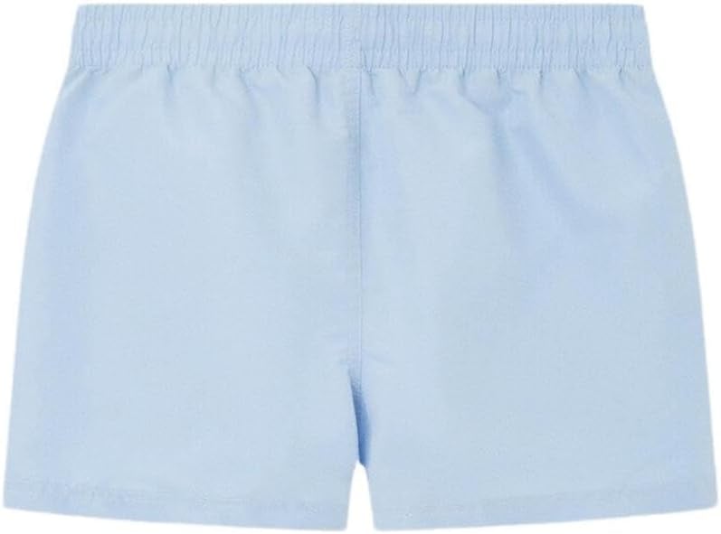 Pantaloni scurți de baie solizi cu etichetă rotundă din cauciuc cu logo, confecționați din țesătură de poliester reciclat cu uscare rapidă. Complet elastici, cu talie contrastantă și șnur de fixare cu logo.