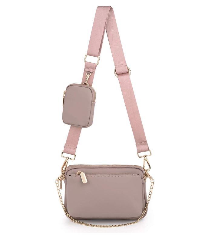 Multifuncțional: Geanta hibridă crossbody vine cu 1 geantă principală detașabilă, 1 mini posetă detașabilă și 1 posetă mică detașabilă pentru monede. Are atât 1 lanț detașabil auriu, cât și 1 curea din nailon reglabilă și detașabilă pentru mai multe opțiuni de transport. 5 piese în diferite potriviri pentru diferite stiluri.
