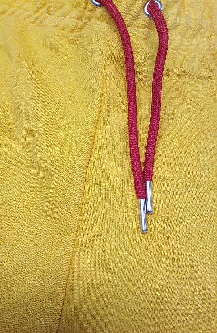 Pantalonii au culoarea galbena, nu rosie.