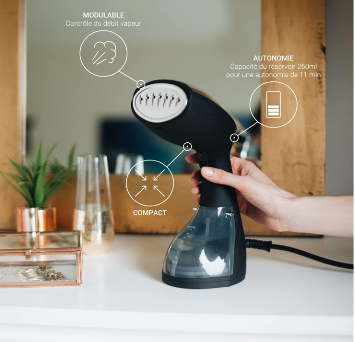Ușor de utilizat: acest produs este deosebit de ergonomic datorită capului său de pulverizare la îndemână, care este conceput pentru a permite aburului să pătrundă mai bine în material. Rezervorul detașabil de 260 ml îl face ușor de utilizat