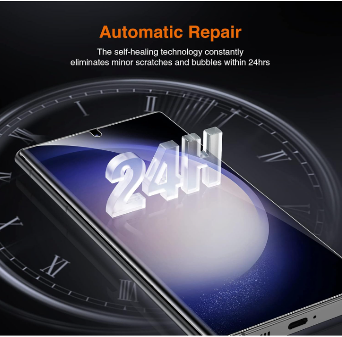 Acest protector de ecran Samsung Galaxy S23 Ultra este realizat din material TPU, care are performanțe extraordinare la rezistența la zgârieturi, repararea la zgârieturi, rezistența la apă și sensibilitatea la atingere. [Notă: orice zgârieturi ușoare ar dispărea în 24-48 de ore.]