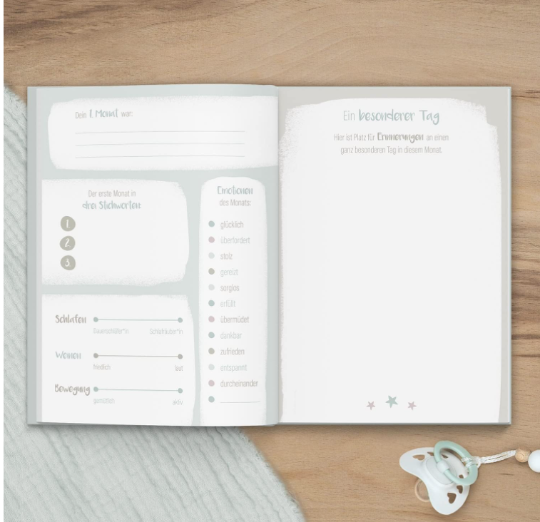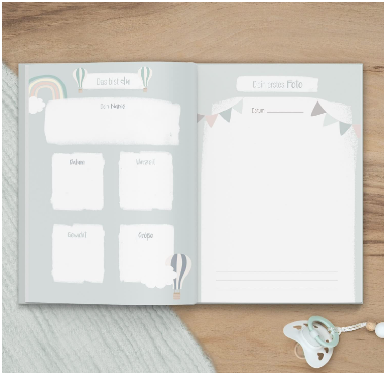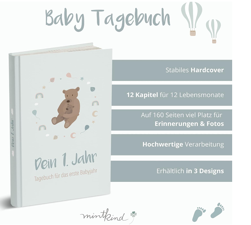 Calitate durabilă: agenda (22 x 15 x 2 cm) este fabricată ca o copertă rigidă și impresionează prin designul său simplu și foarte iubitor. Un must-have pentru primul echipament al bebelusului tau
