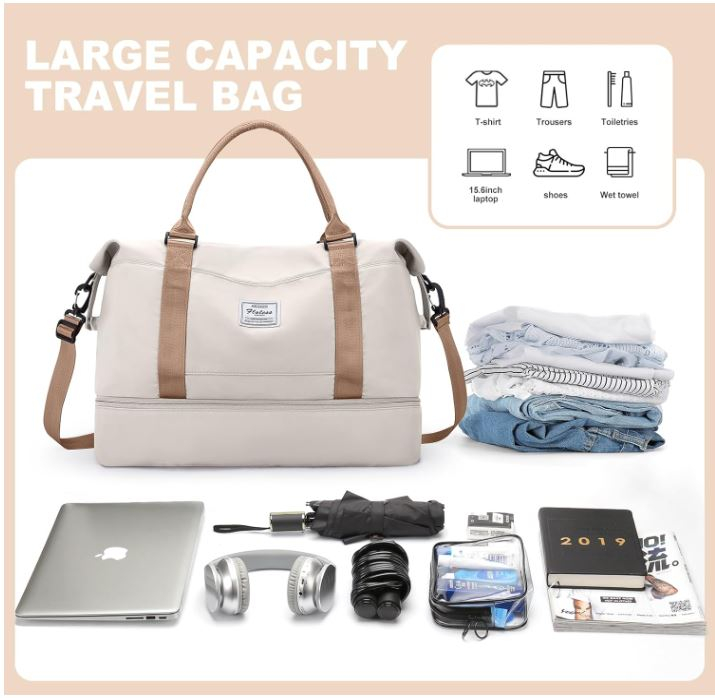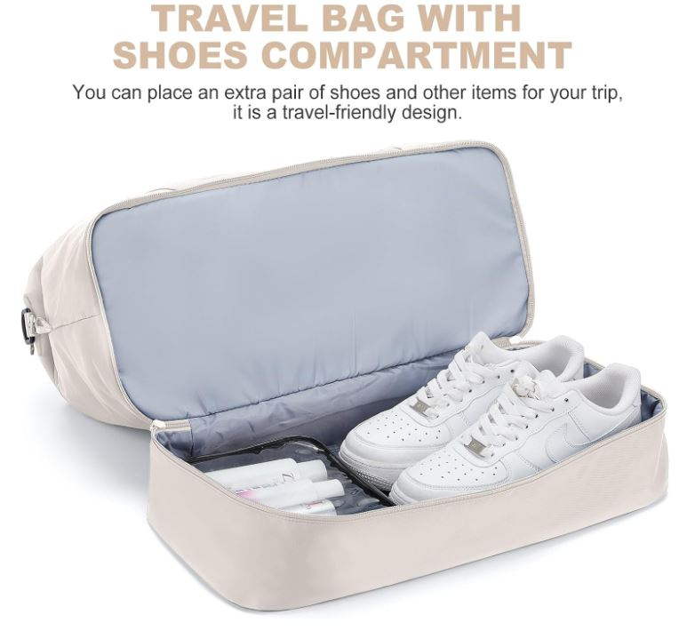 Geanta Weekender cu compartiment pentru pantofi: Un compartiment separat pentru pantofi va poate ajuta sa va transportati si sa depozitati mai bine pantofii in geanta de voiaj, chiar daca este murdara si celelalte articole tot nu se pateaza.