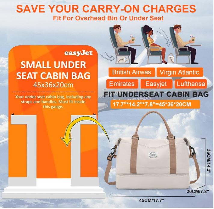 Geanta de mana perfecta pentru Easyjet: Dimensiunea acestei genti de voiaj este de 45 x 36 x 20 cm. Corespunde gamei de bagaje de mână Easyjet 45 x 36 x 20 cm. Geanta dvs. ideală de îmbarcare de weekend pentru călătorii de afaceri sau de vacanță și poate fi depozitată în portbagaj și sub scaun.