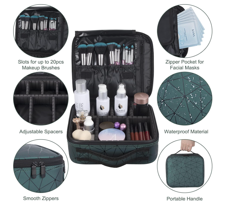Nu numai că poate stoca substanțe de frumusețe precum fond de ten, fard de ochi, ruj, rimel, creion de ochi, pudră, corector etc.; dar potrivit și pentru depozitarea bijuteriilor, cablurilor USB, căștilor, încărcătoarelor și altor accesorii electrice.