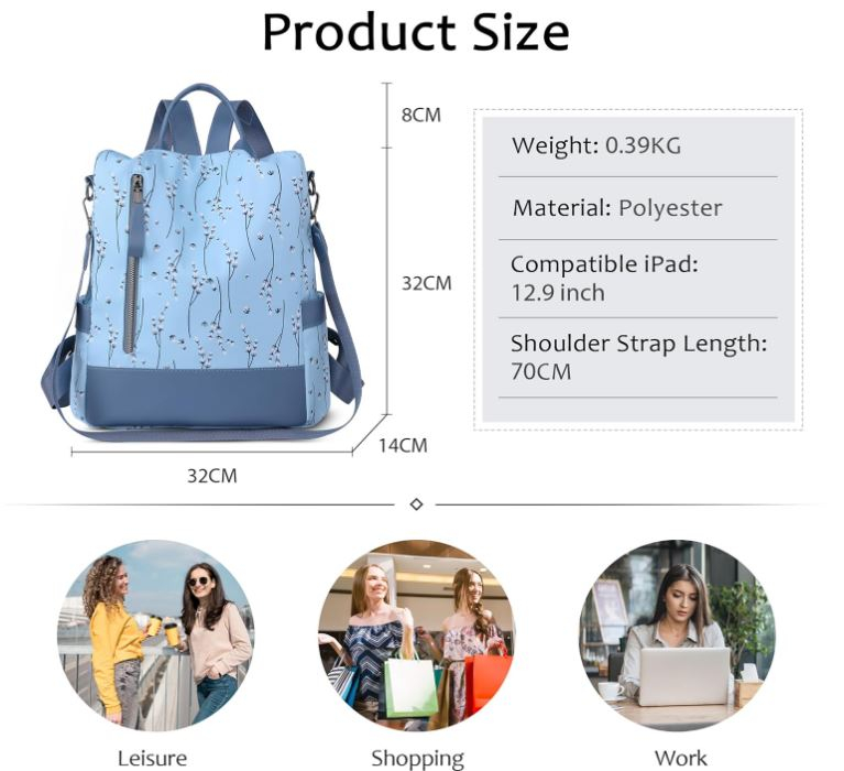 COMPARTIMENTE MULTIPLE DE DEPOZITARE: Dimensiuni: 32 x 14 x 32 cm (L x l x Î). Greutate: 0,5 kg Tipuri de buzunare: 1 buzunar antifurt mare, 2 buzunare cu fermoar, 2 buzunare pentru telefon mobil, 2 buzunare laterale. Poate conține un iPad de 12,9 inch, manuale, reviste, haine, articole de papetărie, sticle de apă, umbrele și alte articole esențiale pentru școală sau exterior. Designul cu buzunare multiple vă permite să vă organizați și să vă clasificați mai bine bunurile.