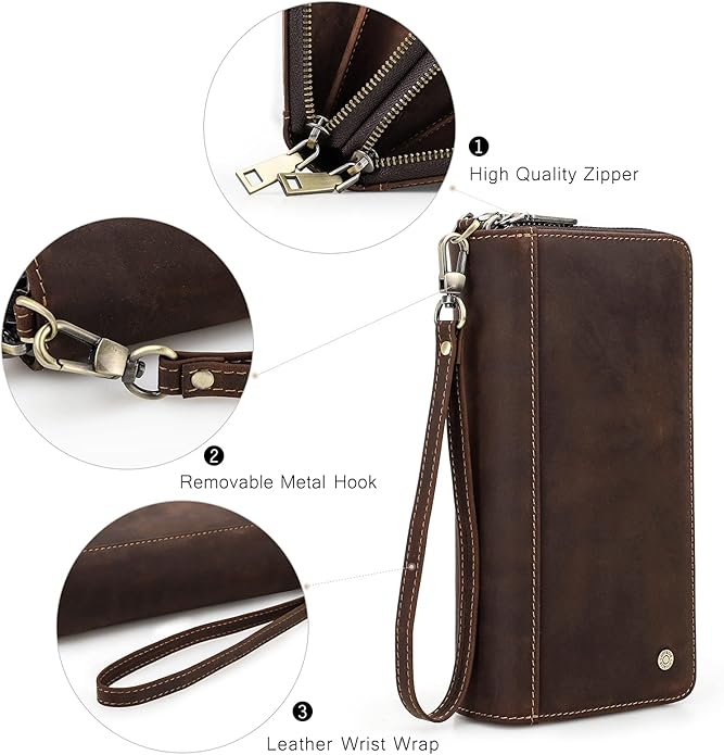 Calitate superioară: portofel lung din piele, moale și confortabil, rezistent la căldură și rezistent la uzură. Abilitati de cusut de inalta calitate, cu fermoare fine si bratari Velcro, elegante si rezistente.