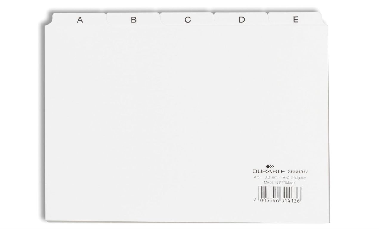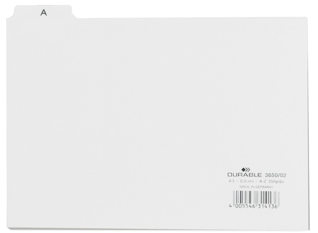 DIMENSIUNI ȘI DIMENSIUNI PACHET: Cardurile de organizare index vin ca un pachet de 1 set de 25 de separatoare în format A5. Dimensiuni: 148 x 210mm - Grosime: 0.3mm - Latimea filetului: 40mm