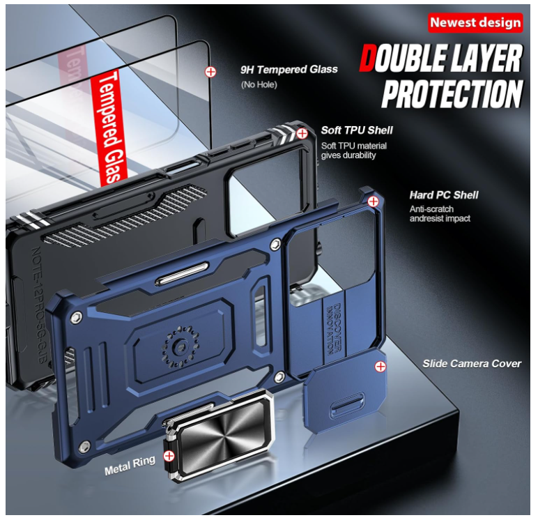 Carcasa include un capac glisant pentru a proteja camera, pe care o puteți închide atunci când nu utilizați camera pentru a o proteja de lovituri, zgârieturi și murdărie. Capacul glisant este ușor de alunecat și nu ușor de slăbit.