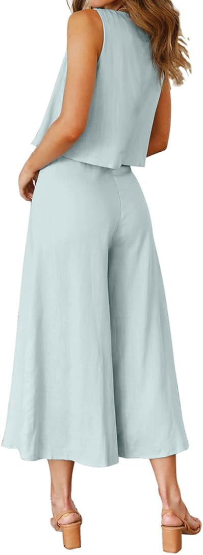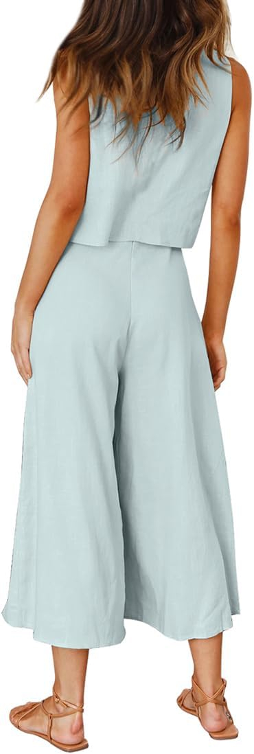 CARACTERISTICI Această ținută din 2 piese include un maiou scurt cu guler rotund și pantaloni cu croi larg. Talia din spate este elastică și are un fermoar ascuns pentru confort sporit.