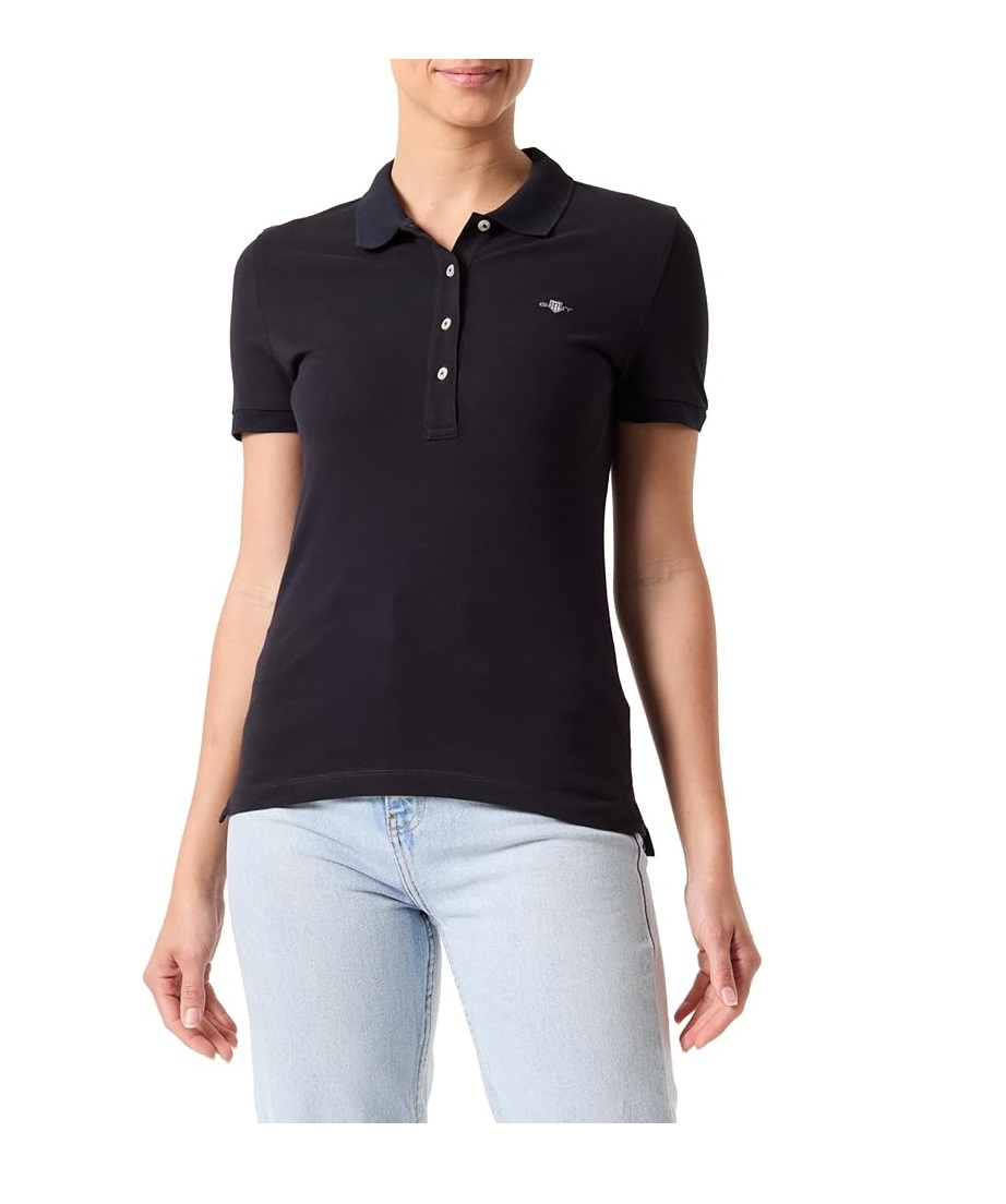 Tricou polo cu maneca scurta pentru femei GANT Slim Sheild, negru, L - OUTLET