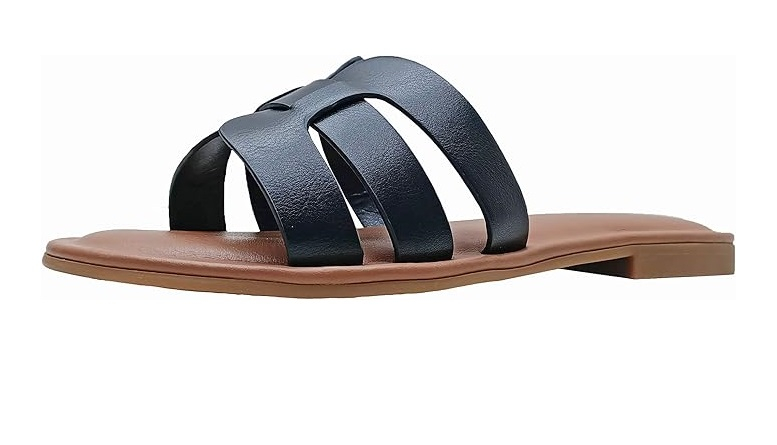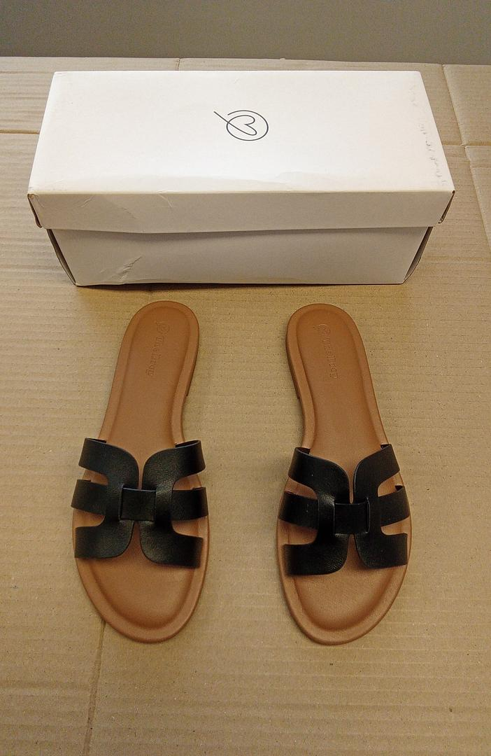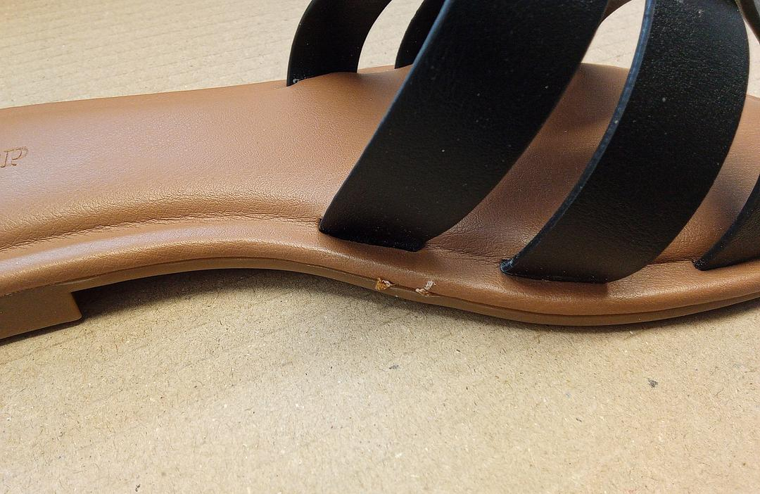 Papucul stang prezinta un mic defect de fabricatie la talpa.