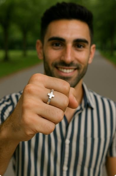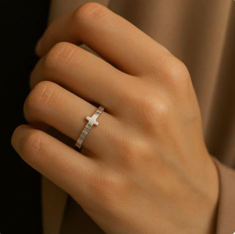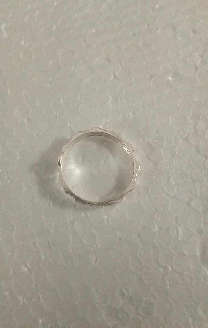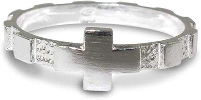Inel rozariu din argint 925. Cruce în mijloc și 10 reliefuri pentru a număra „Ave Maria” la rugăciunea rozariului. Mărime universală (19) *Mărimea corespunde ecartamentului Tatum. Echivalent cu o circumferință a degetului de 59 mm.