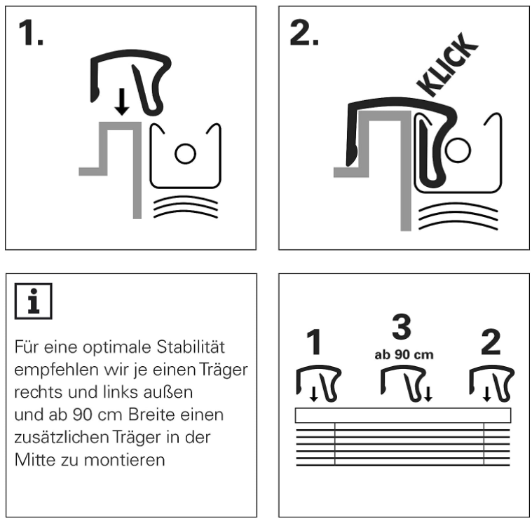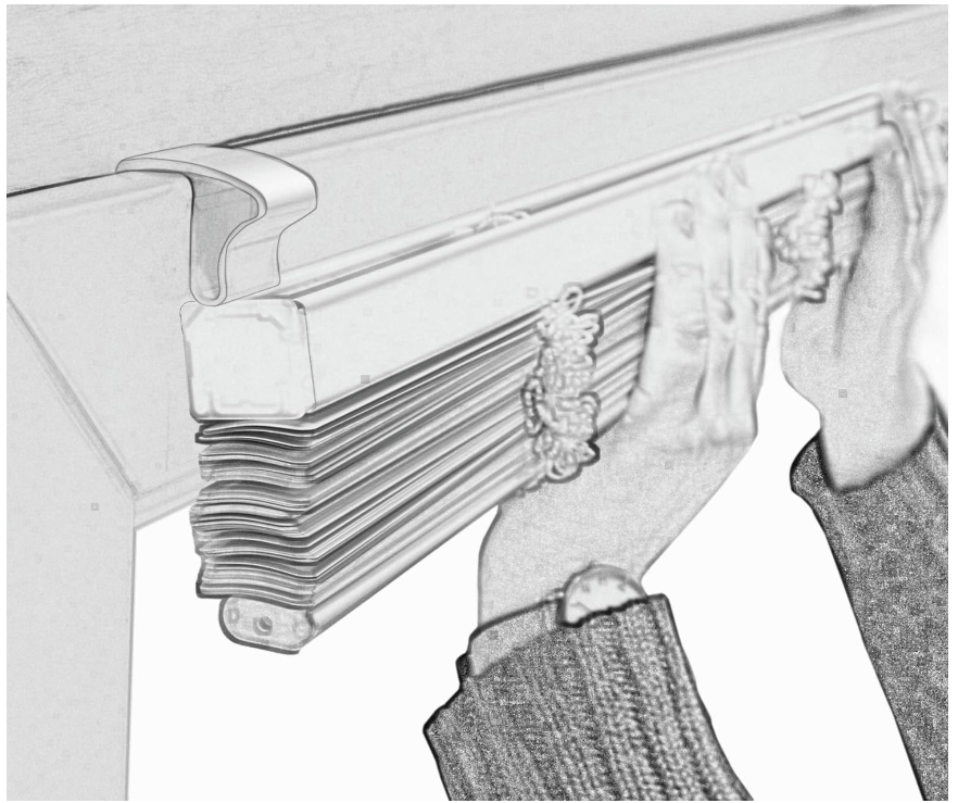 Fixare cu suporți de clemă: Asamblare simplă a pieselor individuale, fixarea jaluzelelor pe partea superioară a ferestrei prin atașarea a două suporturi de clemă.
