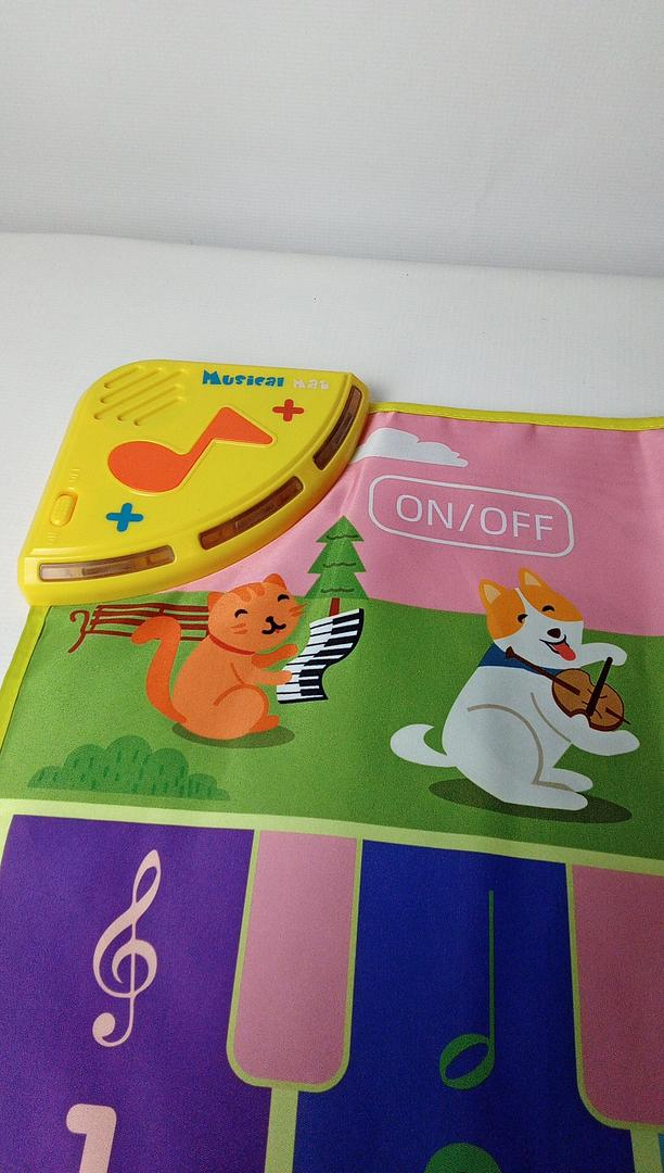 Antiderapant și moale – acest covoraș muzical de pian realizat din material nețesut moale, ecologic și non-toxic. Materialul de înaltă calitate, antiderapant nu dăunează picioarelor copiilor și este ușor de curățat. Prin introducerea cipurilor electronice inteligente, acesta va intra automat în starea de economisire a energiei după 2 minute de inactivitate. În colțul din stânga sus se află întrerupătorul de pornire/oprire și compartimentul bateriei. Puteți regla volumul rotind butonul.